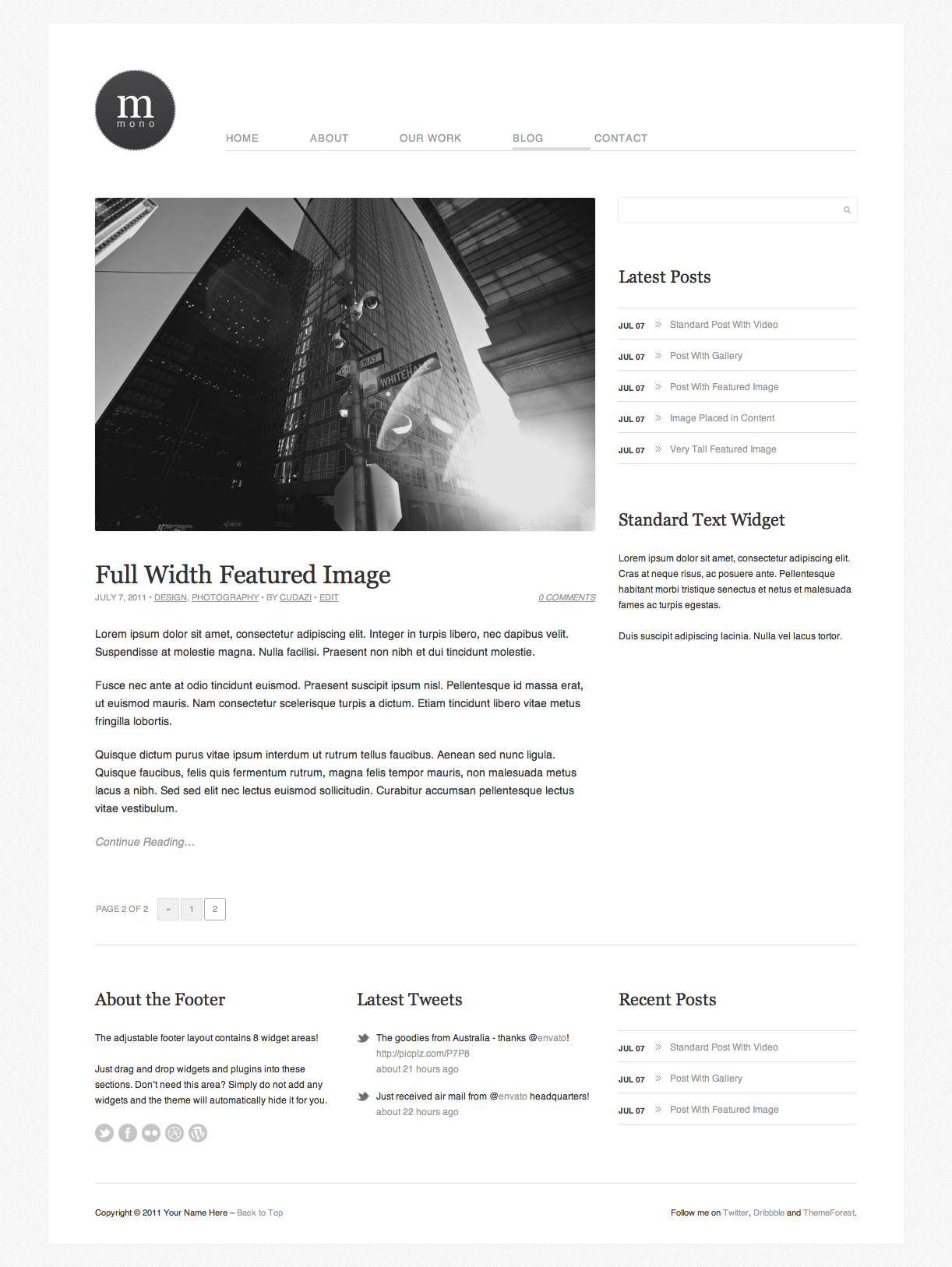 The theme can be customized using the WordPress Custom Background in Appearance > Backgrounds which allows easily uploading of background images or setting of background colors.